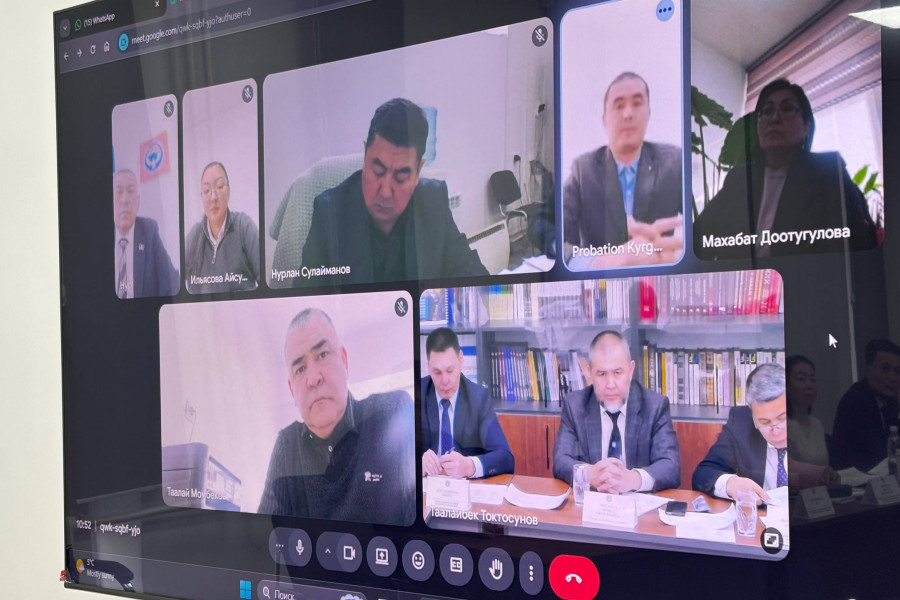 Пробация департаментинде коллегиянын отуруму болуп өттү. Иш-чарага Юстиция министрлигинин пробациялык жана соттук-эксперттик иштер чөйрөсүндөгү саясат башкармалыгынын начальниги Руслан Романов, Департамент жетекчилиги, ошондой эле түзүмдүк жана аймак аралык башкармалыктардын жетекчилери онлайн катышышты. Отурумда пробация органдарынын 2025-жылдагы ишинин жыйынтыктары чыгарылды жана мындан аркы иштин негизги багыттары аныкталды.