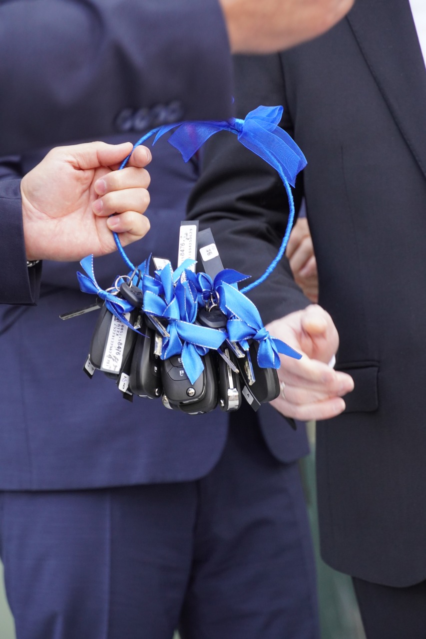 Представитель Европейского Союза и посол Управления ООН по наркотикам и преступности передали директору Департамента пробации ключи от новых автомобилей.